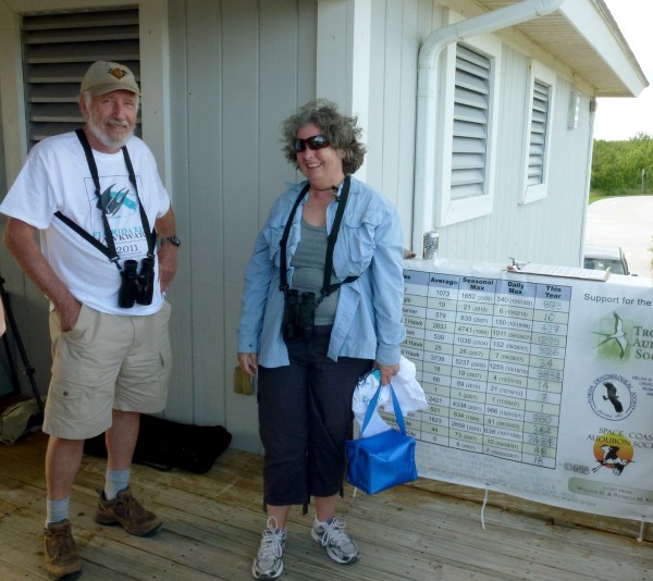Today was the last day of counting for Darrell and Sue Hartman (above), our volunteers from Gainesville. It was great to have them as part of the project; we certainly shared some fantastic raptor flights with them, very many songbirds, good weather and food, and excellent thoughtful and inspiring conversation. They will be missed; we wish them a safe trip back and hope they return soon.