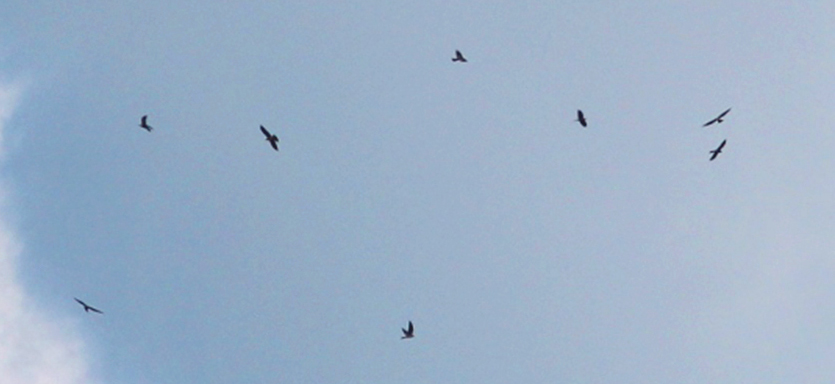 With a total of 234 individuals of 10 raptor species, we could not have asked for a better start to this much-anticipated season. Above, 8 Mississippi Kites were observed moving through at 12:14pm. Photo by Ted Keyel.