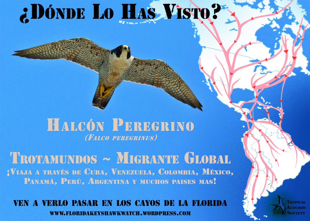 Peregrine Falcon photo by Kevan Sunderland. Graphics and campaign by Rafael Galvez for Tropical Audubon Society.