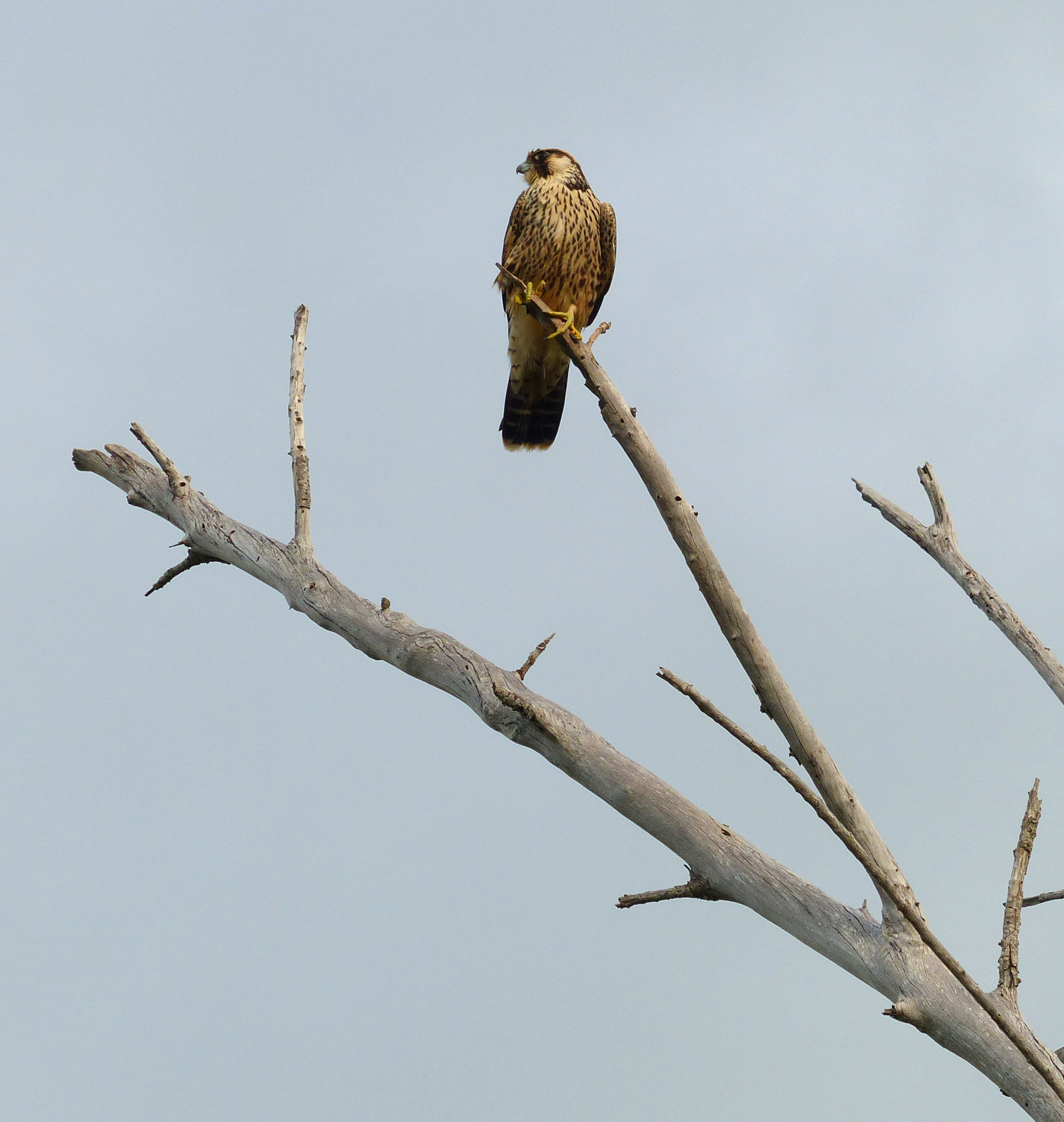 A Merlin on a snag alongside the salt pan. Photo by Rafael Galvez / Leica V-Lux 4.