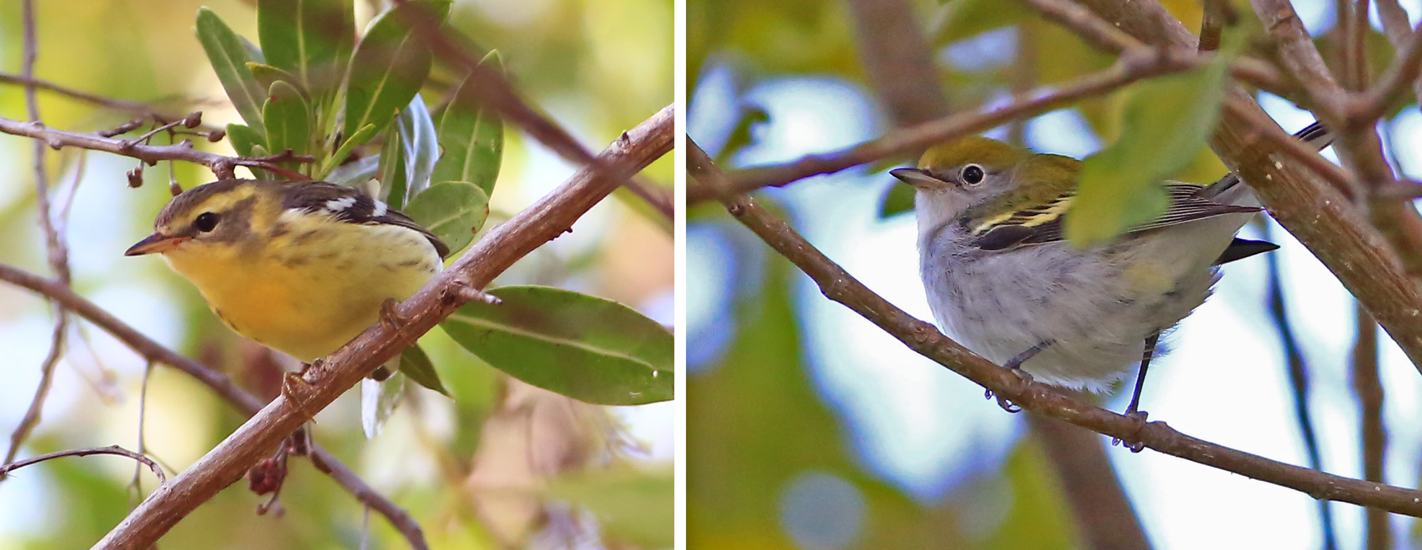 Left: Blackburnian Warbler. Right: Chestnut-sided Warbler. Photos by Bob Stalnaker at Curry Hammock State Park.