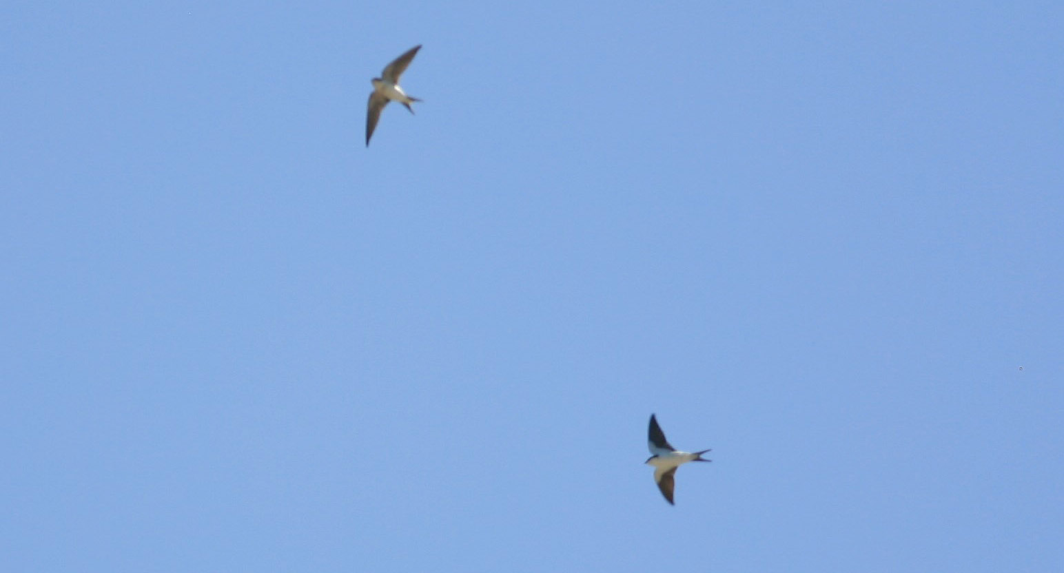 IMG_7312 bAt least 3 Bahama Swallows (Tachycineta cyaneoviridis) were seen this afternoon (October 26) at Curry Hammock State Park – with the first bird – an adult – detected at roughly 2:30 pm. Photographs of individual juvenile and adult birds were captured from the Florida Keys Hawkwatch deck. The birds were seen feeding in relative association with other swallow species, including Barn, Northern Rough-winged and Cliff. One Cave Swallow was also seen this day. Above, an adult photographed by Kerry Ross.