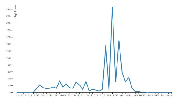 The graph above is courtesy of eBird.org and shows sightings for SK in Monroe county with highest daily counts in late July and August (exceed record days from FKH by almost 500%). SK are rarely detected in the Florda Keys in June, with only 4 individuals being reported during that month to eBird in the past decade. However, that changes dramatically in July.