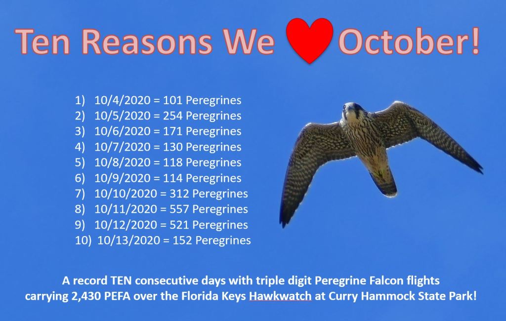 Sadly, after one of our best starts to a season ever, the record-breaking Tropical Storm season has effectively squelched most of our flights. The Keys and southern FL peninsula have been blanketed by storm bands more often than not over the past 7 days, seriously reducing and impeding the raptor flight to and through the Keys, thanks to Hurricane Epsilon and soon to be H. Zeta!